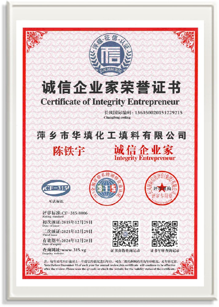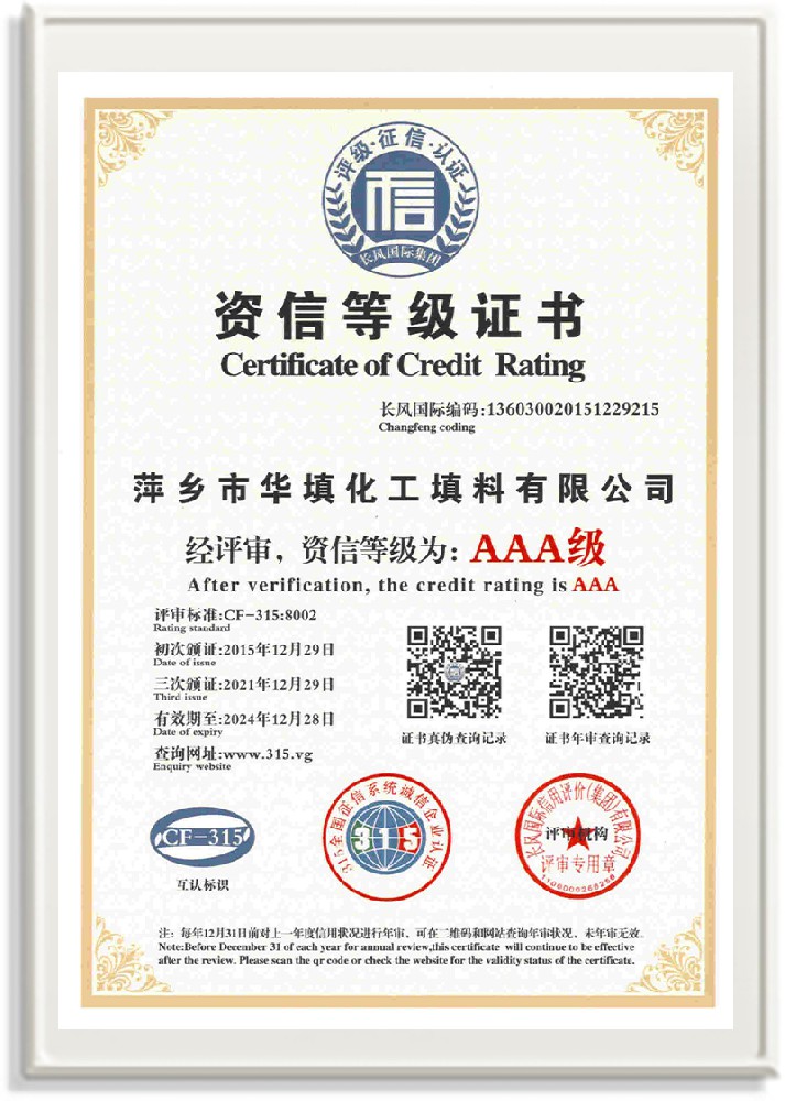 萍鄉(xiāng)市華填化工填料有限公司,位于320國(guó)道、109國(guó)道、浙贛鐵路、昌金高速公路貫穿其中,交通便利,是江西西部一顆燦爛明珠,創(chuàng)建于20世紀(jì)70年代初期,是中國(guó)石油天然氣股份有限公司“能源一號(hào)網(wǎng)”會(huì)員企業(yè)、中國(guó)石化物資采購(gòu)電子商務(wù)網(wǎng)絡(luò)和中國(guó)海洋石油總公司采辦業(yè)務(wù)系統(tǒng)成員單位,是上海大學(xué)江西材料基因組工程產(chǎn)業(yè)研究院工業(yè)陶瓷產(chǎn)業(yè)創(chuàng)新聯(lián)盟基地,且通過(guò)ISO9001:2015質(zhì)量管理體系、ISO14001:2015環(huán)境管理體系、ISO45001:2018職業(yè)健康安全管理體系認(rèn)證的化工填料生產(chǎn)企業(yè)。公司擁有陶瓷、塑料、金屬填料、催化劑、活性氧化鋁、分子篩等產(chǎn)品生產(chǎn)線,現(xiàn)有固定資產(chǎn)3616萬(wàn)元,占地面積3.8萬(wàn)平方米。公司具有悠久的生產(chǎn)歷史、雄厚的技術(shù)力量和先進(jìn)的生產(chǎn)工藝設(shè)備,可生產(chǎn)工業(yè)瓷球(支撐劑)、陶瓷、金屬、塑料質(zhì)的規(guī)整、散堆化工填料及分子篩、催化劑、生化濾料、活性氧化鋁、石化助劑、活性炭、環(huán)保材料、耐火材料等系列的200多種規(guī)格型號(hào)產(chǎn)品。